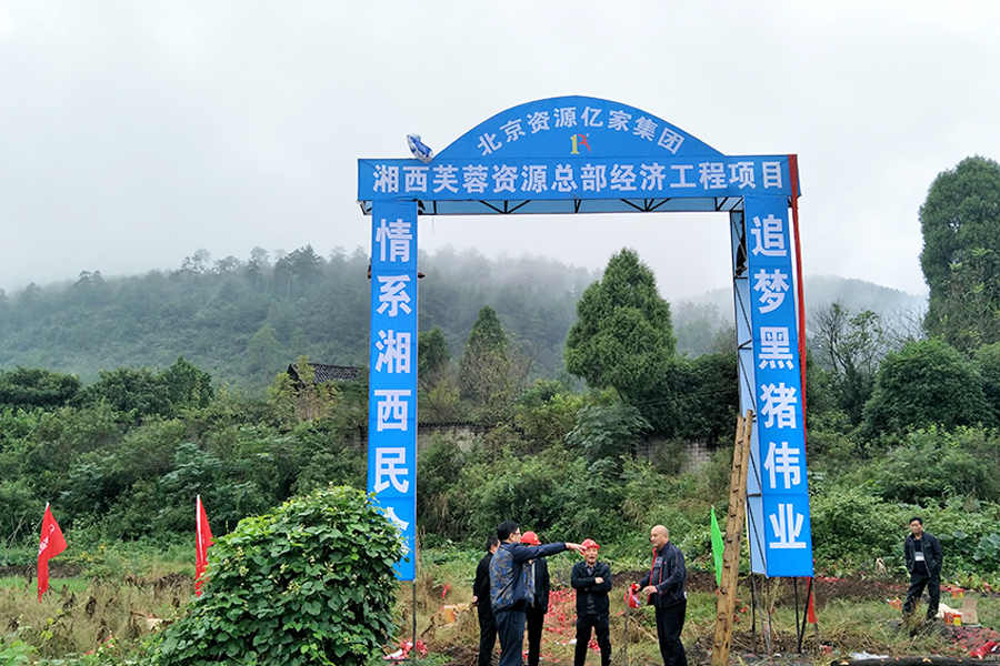 集團副總裁劉忠貽老師、湘西芙蓉資源副總裁徐國建老師、湘西芙蓉資源財務總監李彪老師、湘西黑豬養殖總經理鞠積光老師等一起莊嚴宣讀誓詞,奏樂鳴炮為項目開工奠基。